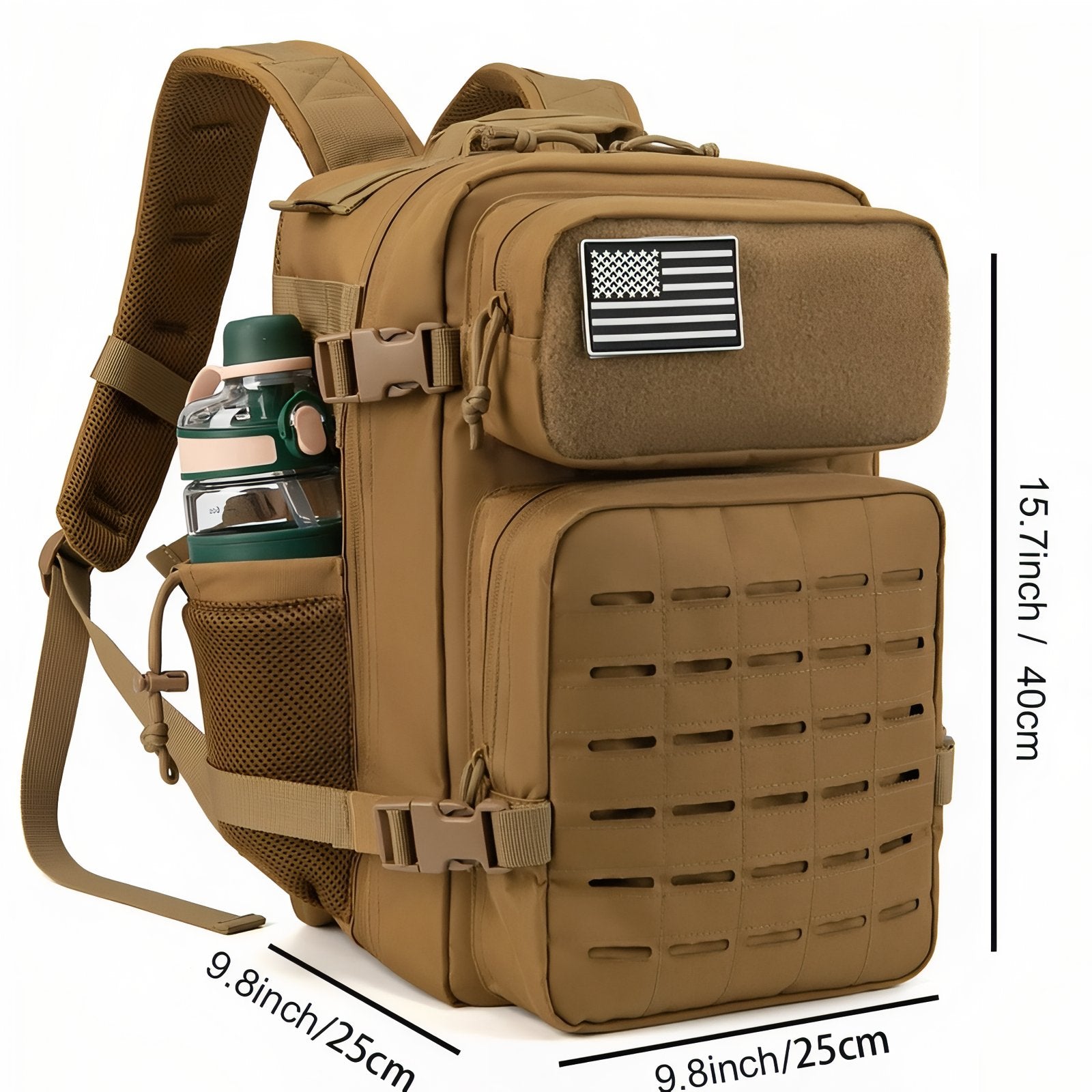 Avec le Sac à Dos Militaire Sable 25L, le confort est à l’honneur grâce à son dos ventilé et ses bretelles rembourrées. Ces caractéristiques permettent une répartition optimale du poids tout au long de la journée, minimisant ainsi la fatigue lors de vos longues marches. De plus, une sangle pectorale ajustable ajoute à la stabilité de l’ensemble pour des déplacements en toute aisance.