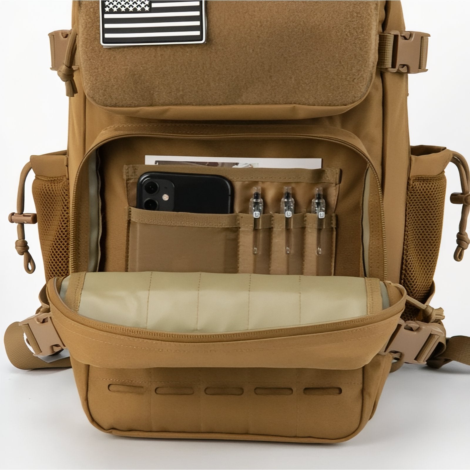 Ce sac à dos n’est pas seulement robuste, il est aussi incroyablement bien pensé niveau organisation. Le Sac à Dos Militaire Sable 25L dispose de multiples compartiments dont une grande poche principale et des poches zippées latérales, permettant un rangement ordonné et une accessibilité rapide à vos équipements essentiels.